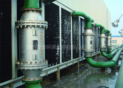 2003年6月,世界最大的純堿生產(chǎn)車間利用春季檢修時間,安裝配套磁化除垢器對工業(yè)循環(huán)水進(jìn)行深度處理,其主要目的是為解決水中硬度和氯離子含量超標(biāo)而引起的對設(shè)備、管道、泵閥的腐蝕和水垢釋出問題。十余年的應(yīng)用實例表明,磁化除垢器的防腐除垢成效顯著,性能非常穩(wěn)定。